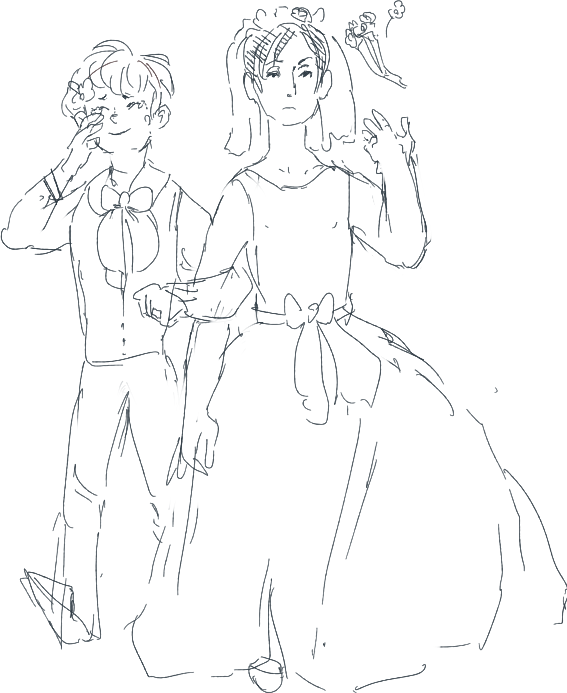 So, here is a selection of my personal collection of Nhaingen pictures. I tried to narrow it down to 10 and failed. Some of these she just sent me and some I conned her into drawing and some came from conversations we were having, but every single thing she's drawn is special to me in some way, even if it's just a sketch or it's kind of a toss-off joke.